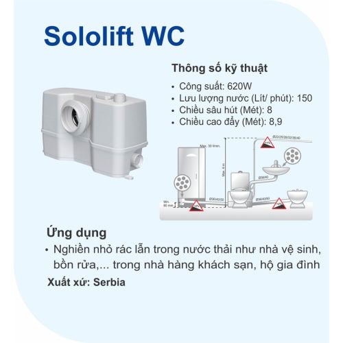 SOLOLIFT2 là loại trạm bơm dâng độc đáo và nhỏ gọn cho phép thoát nước từ mọi thiết bị vệ sinh gia đình bất cứ nơi nào cần thiết, độc lập với hệ thống thoát nước tự chảy.