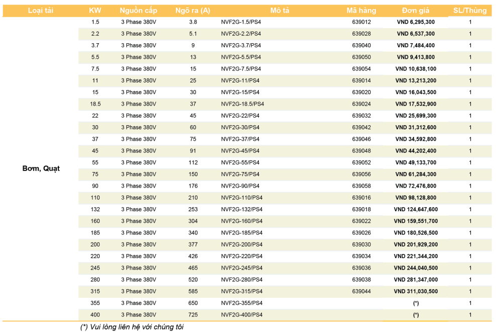 - 0~120Hz cho ứng dụng tải Bơm, Quạt