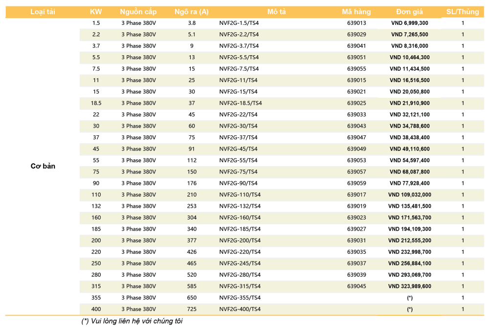 - Điện áp ngõ vào: 3 Pha 380VAC ±15%