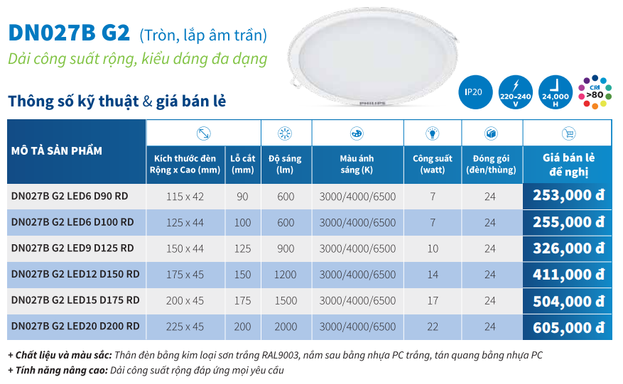 Be the first to review “Philips – Đèn LED âm trần, tròn DN027B G2”