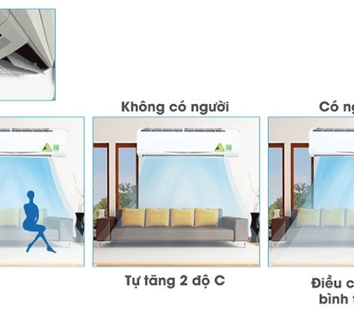 Máy được gắn mắt thần nhằm quan sát sự chuyển động của con người nhằm thống kê tính toán và điều khiển hướng gió một cách tự động thông mình, bên cạnh đó nó có thể tự tắt máy khi không có người trong phòng với thời gian nhất định.