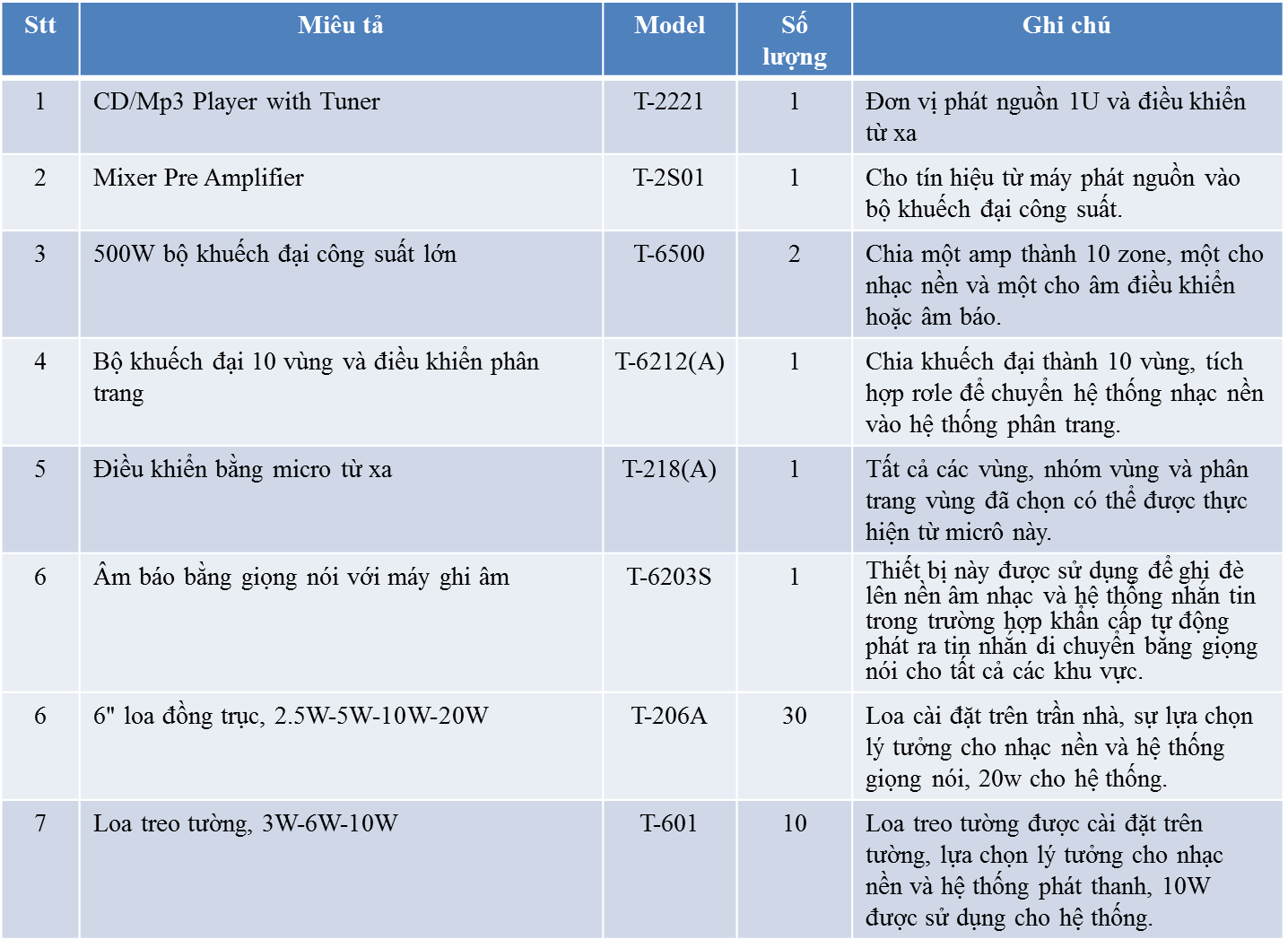 - Máy phát báo thoại T-6203S để ghi đè lên nhạc nền và hệ thống phân trang trong trường hợp khẩn cấp.