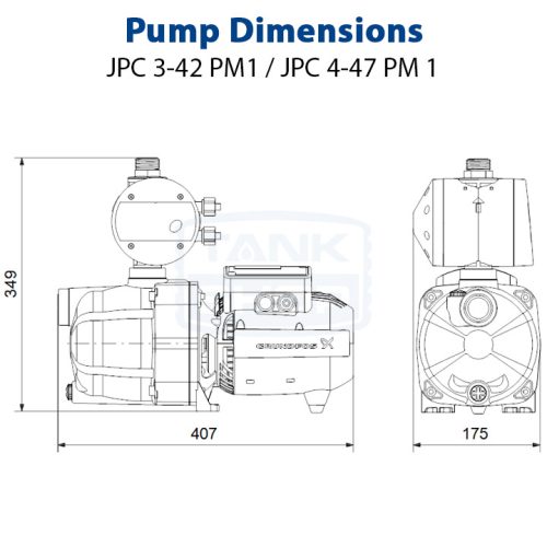 Máy bơm ly tâm tự mồi Composit GRUNDFOS JPC 3-42 chuyên dùng cho mục đích bơm nước lên bể mái cho các tòa nhà dưới 10 tầng hoặc biệt thự. Bơm có khả năng tự hút từ độ sâu 8m, đẩy cao 42m.